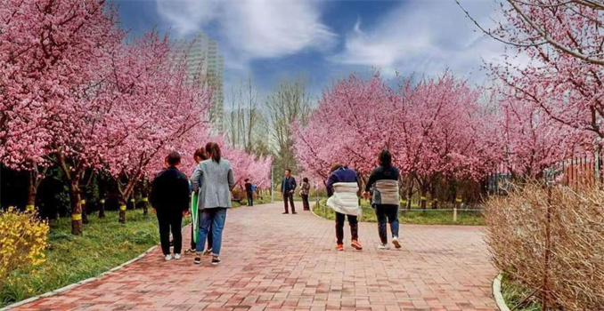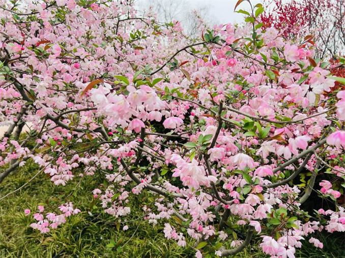 3月中下旬,海棠、櫻花等將陸續(xù)綻放,南門(mén)廣場(chǎng)栽植的連綿數(shù)百米的美人梅也將迎來(lái)花期,美人梅為梅花中花期最晚的品種,盛開(kāi)時(shí)節(jié)色彩亮麗動(dòng)人,如霞似錦。