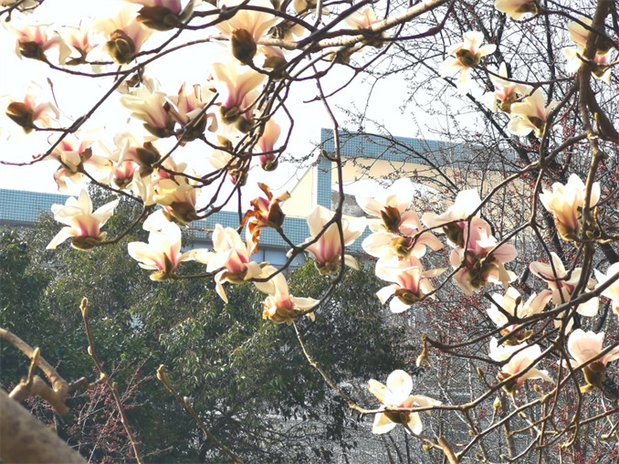 “二喬玉蘭已經(jīng)開(kāi)了,白玉蘭也很快綻放,紫玉蘭也都打苞了,大約下周一、周二,將會(huì)舉辦玉蘭文化展。”市公園廣場(chǎng)事務(wù)中心經(jīng)緯廣場(chǎng)副主任劉文啟告訴記者,經(jīng)緯廣場(chǎng)園區(qū)有十余個(gè)品種百余株玉蘭,每年花開(kāi)時(shí)節(jié),玉蘭花亭亭玉立,似玉如荷,隨風(fēng)搖曳,宛若天女散花,蔚為壯觀。