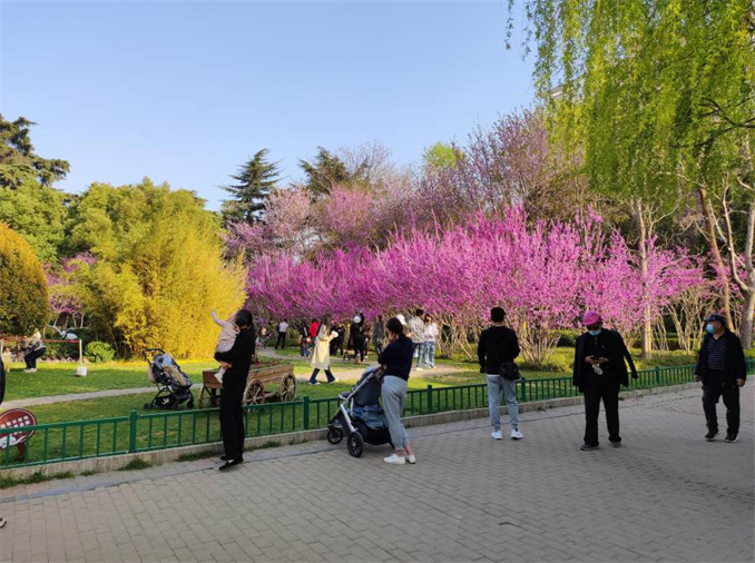 目前,連翹、丁香、玉蘭,以及兒童探索園的郁金香、葡萄風(fēng)信子等球根花卉已開(kāi)放,薔薇園里的桃花已經(jīng)含苞待放,白碧桃和單粉桃將最先展露芳華,花形奇特的“菊花桃”、“壽星桃”,一花雙色的“二色桃”等也即將吐蕊。