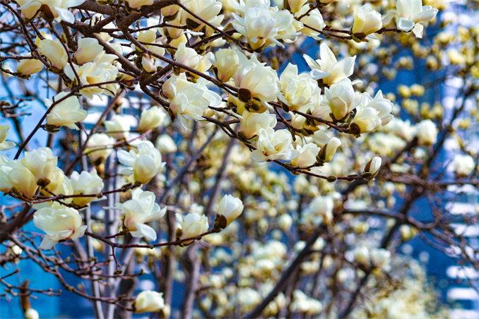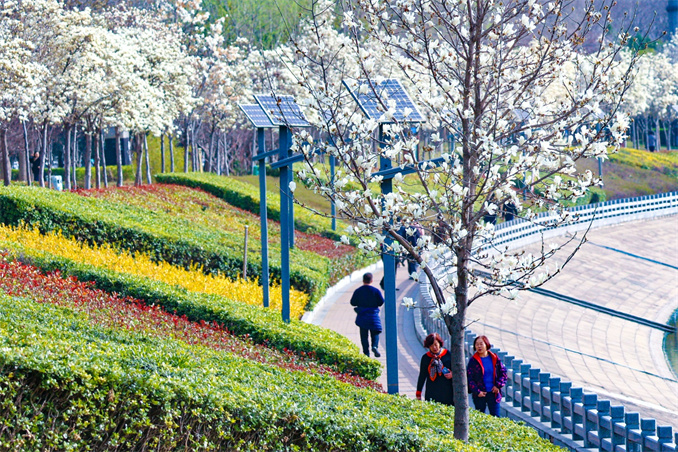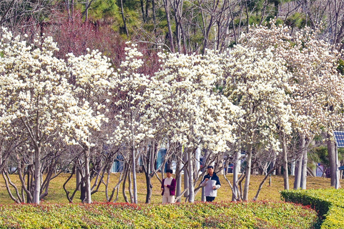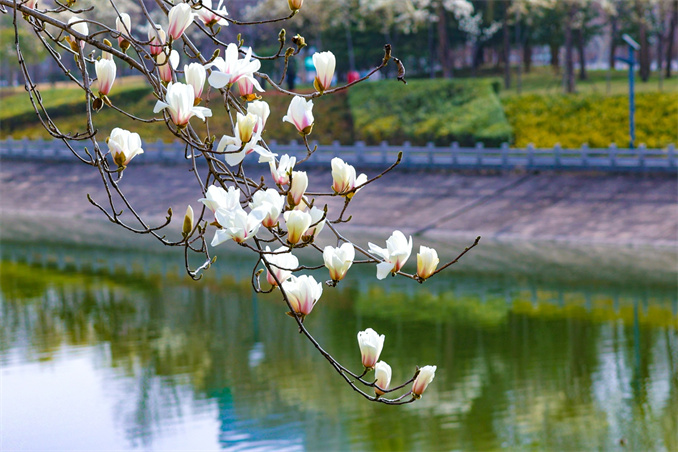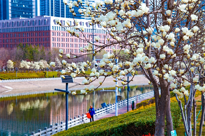 3月12日,鄭州市鄭東新區(qū)的七里河畔迎來(lái)了一場(chǎng)視覺(jué)盛宴。綿延數(shù)里的玉蘭花樹(shù)競(jìng)相綻放,如云似雪的花朵綴滿枝頭,形成了一幅春日勝景。
