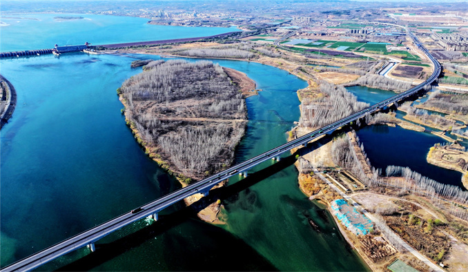 3月17日,洛陽市孟津區(qū)碧波蕩漾的西霞院湖水與雄偉的黃河大壩、跨河公路大橋、沿河美麗村莊、岸邊吐綠楊柳、蜿蜒生態(tài)廊道等構(gòu)成一幅春日黃河風(fēng)景畫卷,美不勝收,吸引大批游客前來圍觀,享受美麗的黃河春光。