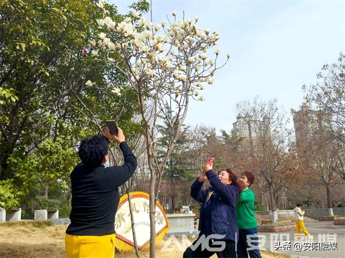 暖陽下、微風(fēng)里,殷墟博物館附近,玉蘭園內(nèi)的玉蘭樹靜靜地伸展著枝條,搖曳生姿,滿樹深深淺淺,有瑩潤飽滿的花苞,有才開了兩三片的花瓣,俏立枝頭、柔軟沉靜,盈盈暗香蕩漾在空氣中,引來不少賞花的市民。