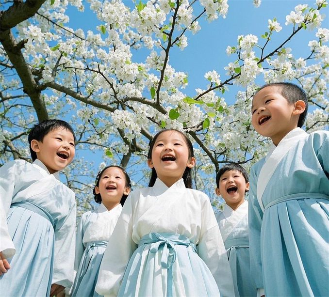 ·童聲滌塵梨雪凈,素袂詠春稚韻長(zhǎng)