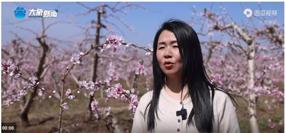 “趁著今天周末和同事來萬畝桃園看看,今天天氣也很好,風景也很好,感覺今天特別開心,也比較喜歡這里。”游客蘇文霞開心的說。