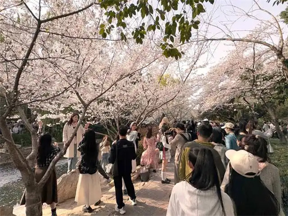 鄭州人民公園的郁金香展吸引了大批游客,公園內(nèi)人頭攢動。櫻花樹下,不少人在這里打卡、留影。