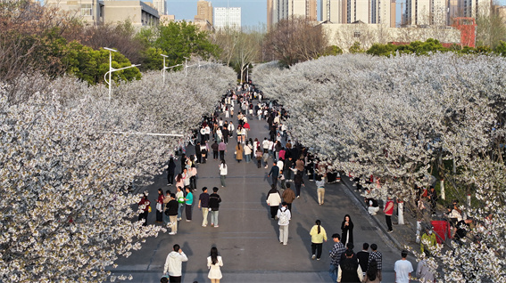 漢服走秀、社火表演、中醫(yī)艾灸、哪吒剪紙、茶藝展示、歌舞快閃、櫻花美食……3月24日,許昌學院第七屆櫻花文化節(jié)盛大開幕,校園里700余棵櫻花絢爛綻放如云似霞,20項文化活動精彩紛呈盡顯青春蓬勃,再次快速火熱“出圈”。