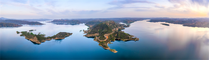 遠(yuǎn)處,層巒疊嶂的黛青色山影綿延至天際,與天穹相接處泛起朦朧的煙靄,仿佛水墨畫中暈染的留白。腳下的小浪底庫區(qū)河面開闊,水流沉靜,宛如一匹緩緩鋪展的綢緞,又似一塊未經(jīng)雕琢的藍(lán)寶石,靜臥于群山懷抱中,澄澈的水面倒映著流云與飛鳥,沒有驚濤,沒有轟鳴,只有陽光在水面撒下細(xì)碎的金箔,隨著微波輕輕蕩漾,偶爾會有一葉小舟劃過,在河面上劃開一道細(xì)碎的銀痕,像是從《水經(jīng)注》里奔流至今的文明脈絡(luò)。