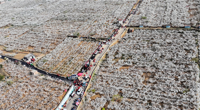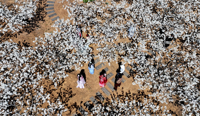 洛陽市孟津區(qū)會盟鎮(zhèn)的萬畝梨花在春風中開放,山野仿佛在一夜之間被“白雪”覆蓋,蔚為壯觀,吸引成千上萬的游客紛至沓來,賞花游玩,感受田園樂趣(3月26日攝)。當日,會盟鎮(zhèn)舉行了第十二屆黃河文化旅游季啟動儀式。