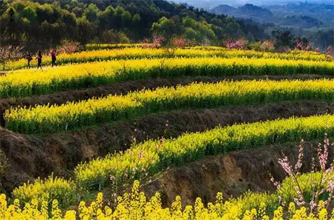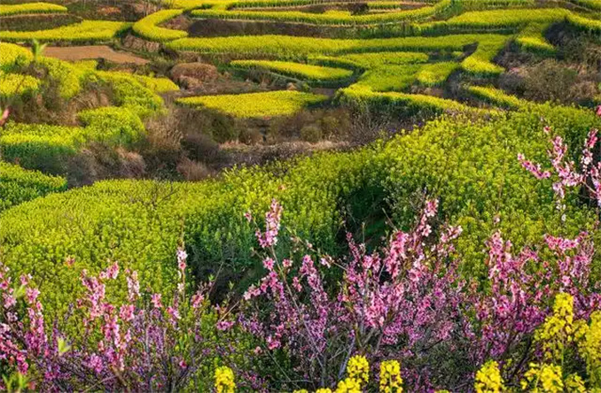 春意濃,花正盛。3月30日,在新縣,7萬余畝油菜花進(jìn)入了盛花期。漫山遍野的油菜花或沿梯田,或依山水,金黃色的花朵在微風(fēng)中輕輕搖曳,大地仿佛穿上了一件璀璨的黃色禮服。遠(yuǎn)處,一層層、一壟壟油菜花接力般地向天際延展,綠黃相間的美景令人贊嘆不已。粉色的桃花點綴其間,為整個畫面增添了一抹甜美與溫柔。漫步于此,仿佛置身于一幅生機(jī)勃勃的田園畫卷,讓人心曠神怡,流連忘返。