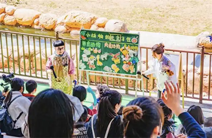 觀看火烈鳥飛舞盤旋、眺望“草原模特”長頸鹿進(jìn)食、驚喜見到被譽為“高原珍珠”的白牦牛……在動物百老匯劇場內(nèi),一場奇妙的動物秀引得孩子們陣陣歡呼。作為公益嘉賓,“金龜子姐姐”劉純燕與韓佳老師亮相并化身科普講解員,通過趣味問答和動物行為展示,引導(dǎo)孩子們辨識各種動物,充分激發(fā)探索大自然的熱情。