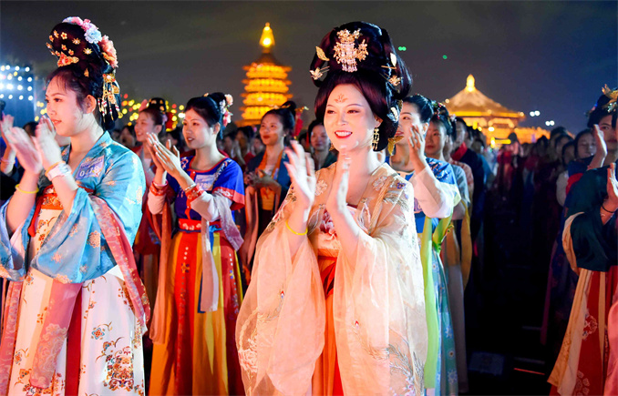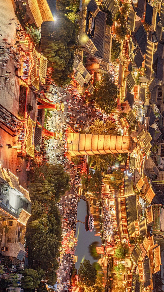 華燈初上,洛邑古城涌入上千名游客。在這里,唐代酒樓、宋代商鋪,交相輝映;小橋流水、青磚黛瓦,一步一景。裙裾飄飄、團扇遮面的古裝佳人或倚窗凝思,或憑欄望月,置身其中,讓人不辨古今。“來一次洛陽、穿一次漢服”,成為無數(shù)人的浪漫之約。