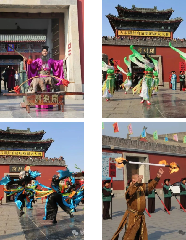 今年,開封府頒新火大典導演組在原有節(jié)目的基礎(chǔ)上, 深挖文化內(nèi)涵、重整歷史脈絡,更加準確、翔實、生動地 還原了當時北宋清明頒新火大典的場景。 開封府頒新火、贈柳、繪紙鳶等清明文化系列活動, 于4月1日至6日每日上演。