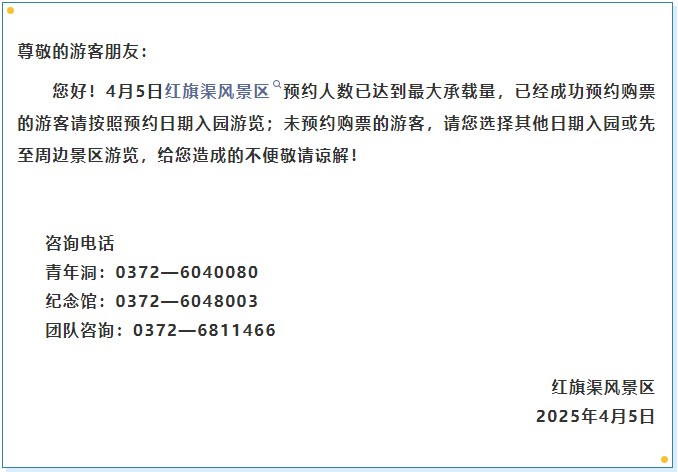 紅旗渠風(fēng)景區(qū)發(fā)布限流公告