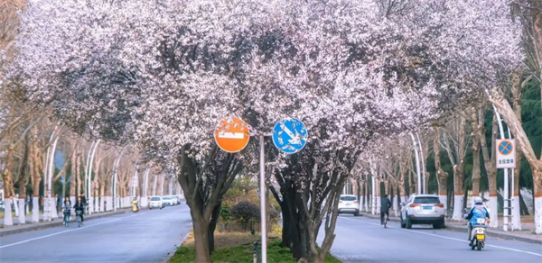 鄭大校園內(nèi)的櫻花大道便成了花的海洋