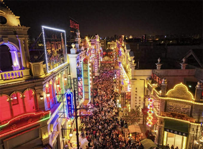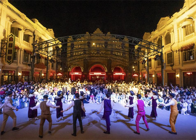 建業(yè)電影小鎮(zhèn)推出的大型實(shí)景劇本殺《戲精請就位》吸引了眾多年輕游客,游客通過隨機(jī)抽取角色卡與百名NPC互動演繹劇情,趣味性十足。此外,環(huán)形水劇場升級節(jié)目《無名之戰(zhàn)》震撼上演,《穿越德化街》大劇場座無虛席,夜游大劇《一路有戲》再現(xiàn)老鄭州風(fēng)貌,百場劇目遍布全園,實(shí)現(xiàn)“全天候演藝不落幕”。
