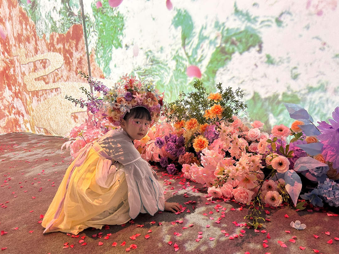 兒童在“櫻花奇境”光影空間沉浸式觀賞體驗(yàn)。