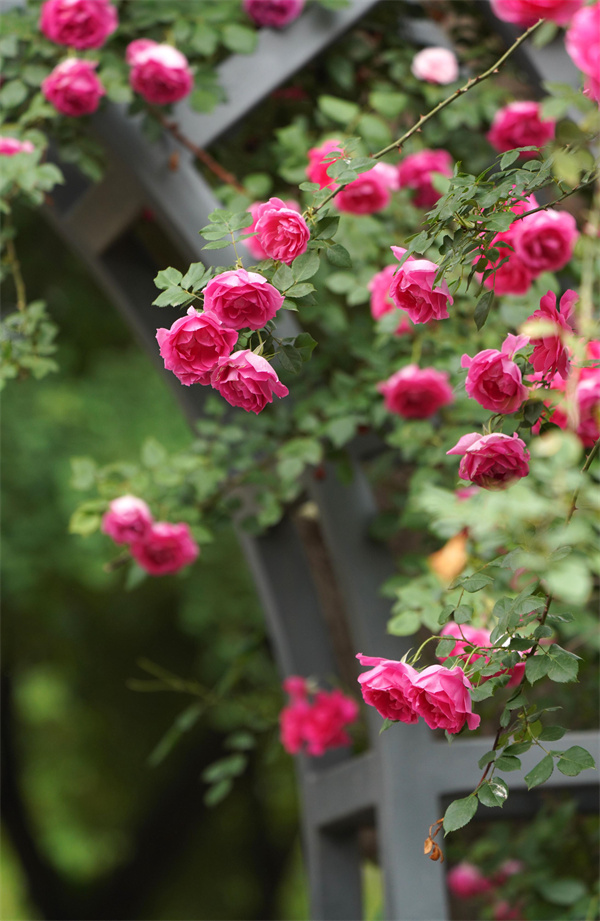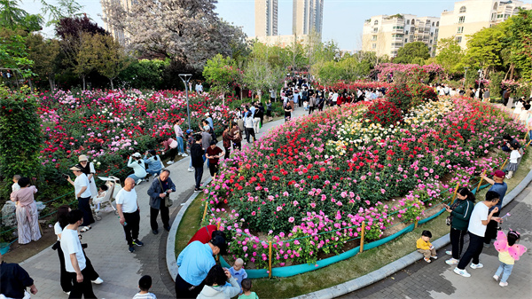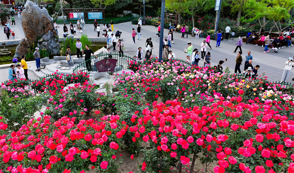 鄭州市月季公園集月季科研、觀賞于一體,園內(nèi)設(shè)置8個景區(qū),由南向北依次為:月季栽培展示區(qū)、月季品種園、引種培育區(qū)、盆景奇石展示區(qū)、月季文化演繹區(qū)、月季樹樁盆景栽植區(qū)、山水風光區(qū)、生產(chǎn)管理區(qū)。目前,園內(nèi)40萬株月季已次第綻放,姹紫嫣紅一片花海,是觀賞月季的最佳去處,西門口大花壇、月季景墻、東門內(nèi)月季花帶、南門附近月季花廊等,前來打卡的游客絡(luò)繹不絕;▓F錦簇的公園月季花廊東側(cè),還種植有一片月季同屬薔薇科的玫瑰,4月底開放,屆時,其嬌美的容顏、馥郁的香氣一定會帶給你驚喜。