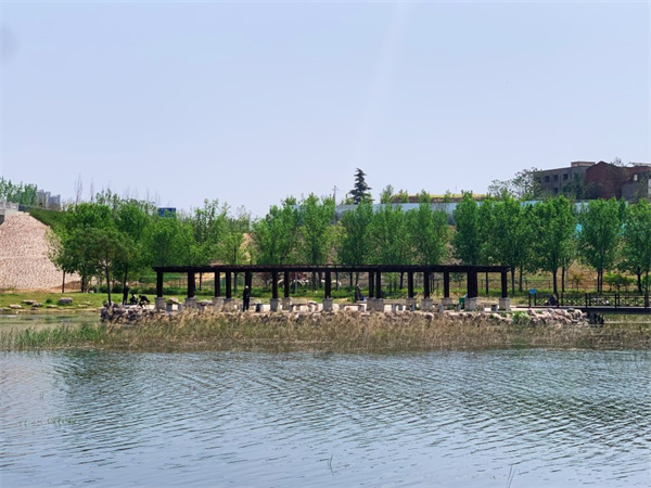 該處公園圍繞著賈魯河所打造,隴海西路段的蘆葦蕩旁,暗紅色棧道蜿蜒于綠蔭中,偶有野鴨掠過水面,構(gòu)成“城市野趣”畫面。當(dāng)隨著蜿蜒的河流漫步向前,春日?qǐng)D景盡收眼底。河道邊的古木棧道與拱橋頗有江南詩意, 移步向前,忽聽潺潺水聲,停留在此,便可享受片刻寧靜,感受河湖魅力。