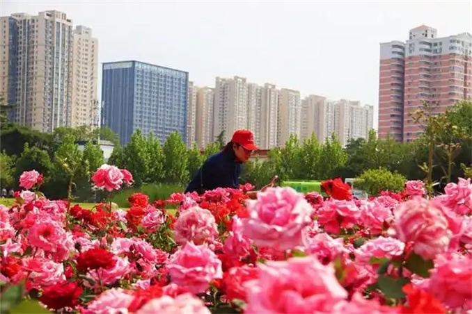 4月26日,市民和游客在南陽市城區(qū)的公園、花園、街頭駐足觀賞月季花,打卡留念,樂享春日好時光。