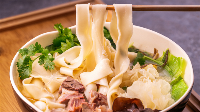 燴面,河南美食的“扛把子”。比臉還寬的扯面浸在羊骨熬制的雪白濃湯里。值得一提的是,鄭州燴面還有“混搭風(fēng)”隱藏吃法,老式燴面中加入咖喱粉,湯色金黃成為鄭州西郊的“隱藏款美食”。