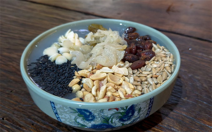 古法藕粉打底,鋪滿杏仁/山楂糕的宋朝下午茶,顏值高且適合拍照,被稱作“中式甜品天花板”。拍照時(shí)記得說“老板多撒糖桂花”,出片率暴漲200%!