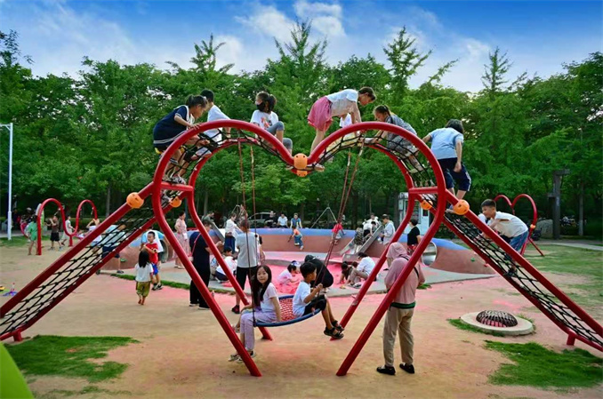 充分結(jié)合每個“口袋公園”的結(jié)構(gòu)、空間等特點(diǎn),鶴壁市量身定制,將其塑造為群眾游樂的新窗口。在優(yōu)化公園綠地建設(shè)的基礎(chǔ)上,加強(qiáng)公園游園、小微綠地等各類服務(wù)設(shè)施和場地適幼化改造,設(shè)置游戲區(qū)域和游憩設(shè)施,進(jìn)一步優(yōu)化群眾生活環(huán)境,提升城市生活品質(zhì)。同時,積極推行“公園+”模式,實(shí)施“公園+文化”“公園+運(yùn)動”“公園+科普”“公園+淇河書屋”等建設(shè),設(shè)置娛樂設(shè)施,如滑梯、秋千、攀爬架、沙池、健康步道等,滿足各類人群的休閑需求。