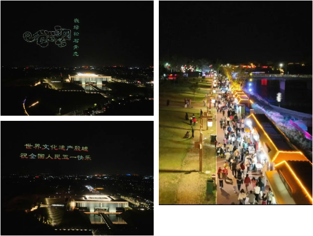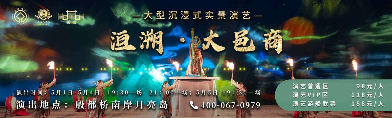 ✅ 壓軸震撼:洹河月亮島《洹溯·大邑商》實(shí)景演藝19:00(5月5日演藝為一場),無人機(jī)空中浪漫再現(xiàn)殷商珍寶。(常態(tài)化表演,5月表演排期敬請關(guān)注