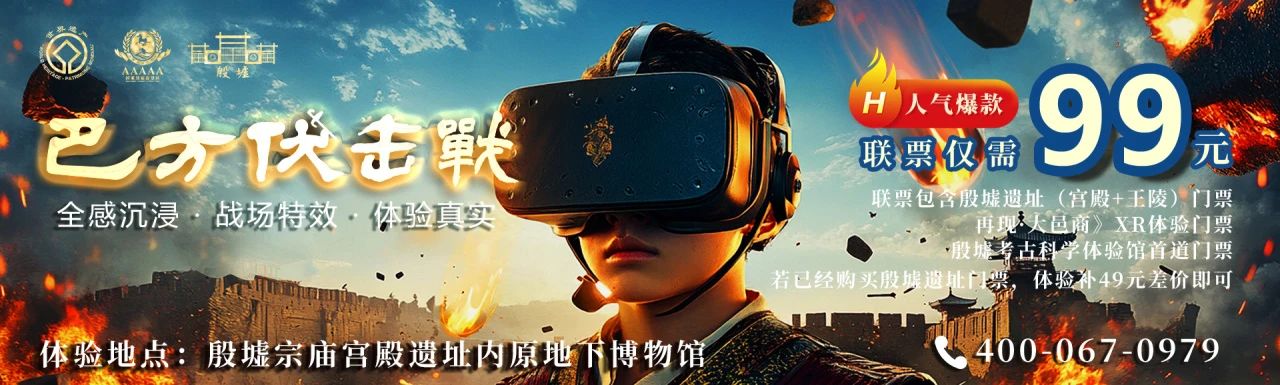 ✅ 黑科技體驗(yàn):殷墟遺址“巴方伏擊戰(zhàn)”XR項(xiàng)目體驗(yàn)真實(shí)刺激戰(zhàn)場;婦好墓XR項(xiàng)目感受傳奇王后歸來為你講述文物珍寶;景區(qū)AR導(dǎo)覽是為您精心準(zhǔn)備的一場跨越時(shí)空的對話,讓殷商文明觸手可及。(常態(tài)化體驗(yàn)項(xiàng)目)