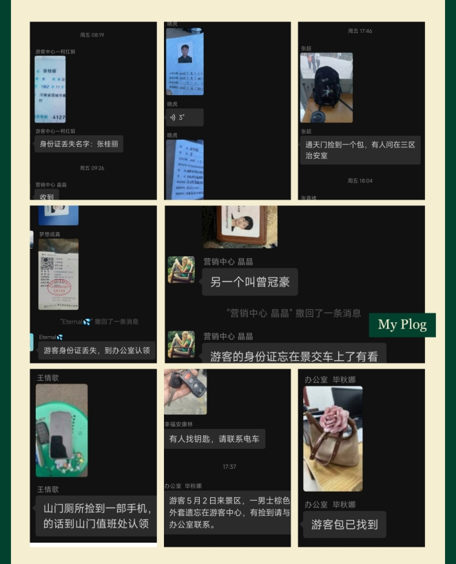 在五一假期期間,堯山風(fēng)景區(qū)的工作人員不僅在安全保障方面全力以赴,更在服務(wù)游客的過(guò)程中,多次上演暖心之舉。每天工作群內(nèi)都會(huì)有求助的信息發(fā)出:幫助游客尋找走散的老人、小孩共計(jì)9名,協(xié)助游客找回丟失的包包、衣服、鑰匙、手機(jī)等物品若干。景區(qū)以實(shí)際行動(dòng)傳遞溫暖,彰顯景區(qū)人文關(guān)懷與服務(wù)理念。