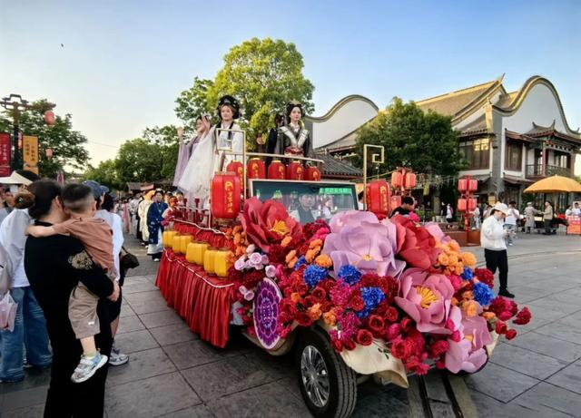 走進4A景區(qū)皇家驛站,人流如織,熱鬧非凡。“五一”特色演出輪番上演,古風快閃、情景劇、花船表演、民俗花轎、雜技表演等節(jié)目吸睛無數,游客沉醉其中,仿若夢回千年。此外,皇家驛站景區(qū)還利用藍夢拾遺、陶藝館等特色文創(chuàng)館,增設扎染、陶瓷制作等體驗項目,舉辦明宮月樂、盛世飛花宴、夜間花車巡游、運河水上演藝等夜間演藝主題活動,極大地豐富了游客體驗,激發(fā)了消費熱情。