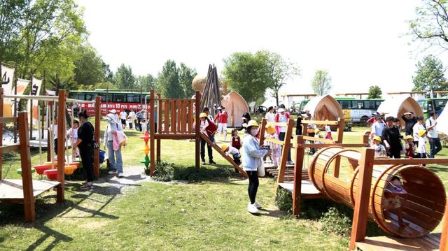 “五一”期間,游客們正在鄉(xiāng)野拾光游玩。