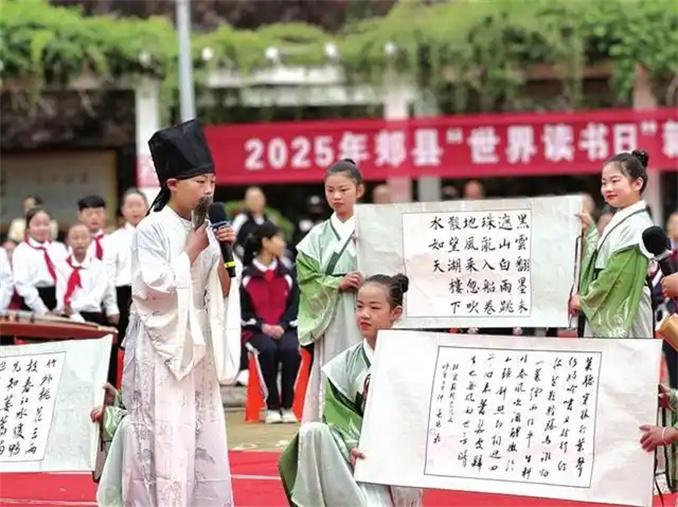 2025年郟縣“世界讀書日”新時(shí)代文明實(shí)踐集中活動(dòng)中,300余名小學(xué)生吟誦演繹蘇軾經(jīng)典詩詞。