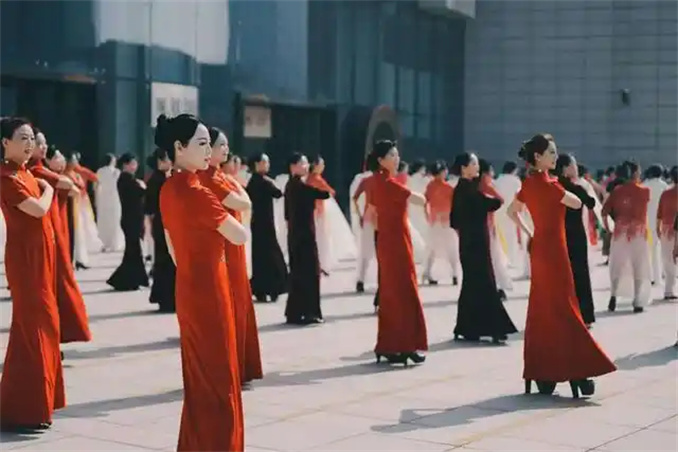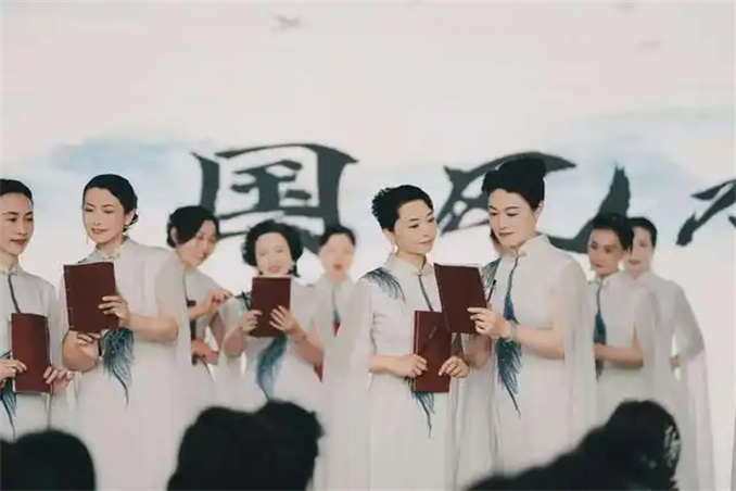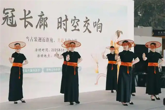 此外,《攙扶》《夜宴》等劇目通過現(xiàn)代編舞重構(gòu)傳統(tǒng)禮儀:青年旗袍愛好者以攙扶動(dòng)作演繹孝道文化,《夜宴》則以宮廷旗袍群舞展現(xiàn)“一步一搖”的東方儀態(tài)美學(xué)。