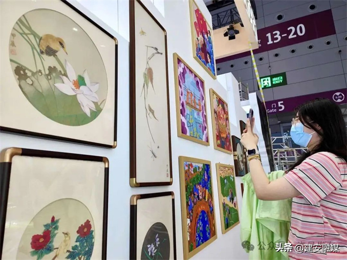 建安區(qū)麥秸工藝品工作室創(chuàng)作的麥秸畫《聽琴圖》在去年曾首次亮相深圳文博會(huì),并取得豐碩成果,隨后還吸引了國(guó)內(nèi)多所名校師生前來(lái)考察。這次,市級(jí)麥秸畫非遺項(xiàng)目傳承人楊麗麗帶來(lái)了《花氣襲禽》《菡萏棲羽》等5幅麥秸畫新作。其中,《貝葉蟲草圖》參照齊白石先生原作,融入現(xiàn)代美術(shù)思想及繪畫、緙絲技法,充分展現(xiàn)出麥秸畫作為民間傳統(tǒng)工藝瑰寶,現(xiàn)場(chǎng)也吸引了不少觀眾的目光。