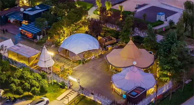 在北龍湖畔的新發(fā)展·天鵝灣自由地,夜晚是炭火與星光的合奏。5000平米的營(yíng)地里,熱氣騰騰的烤肉飄著香氣,民謠酒館的吉他聲隨風(fēng)輕蕩,后備箱市集的咖啡車(chē)點(diǎn)亮“微型夜市”。主理人禹文龍將這里定義為“戶(hù)外商業(yè)綜合體”——既非遠(yuǎn)郊露營(yíng)的“專(zhuān)業(yè)門(mén)檻”,也非標(biāo)準(zhǔn)化商場(chǎng)的“精致疏離”,而是城市青年觸手可及的“第三空間”。