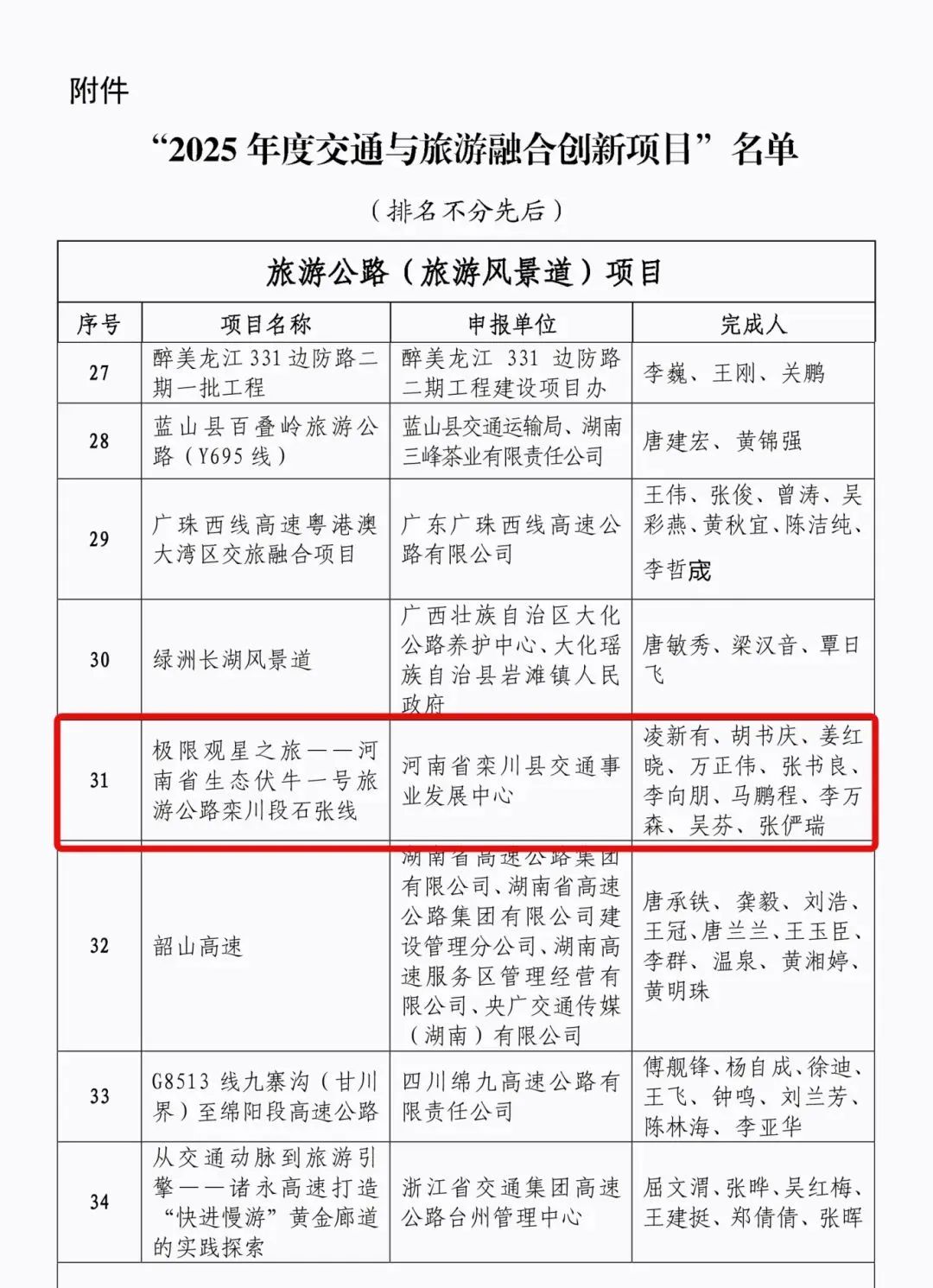 近日,中國公路學(xué)會(huì)旅游交通工作委員會(huì)公布了“2025年度交通與旅游融合創(chuàng)新項(xiàng)目”名單,洛陽市“極限觀星之旅——河南省生態(tài)伏牛一號(hào)旅游公路欒川段石張線”項(xiàng)目成功入選。