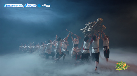 《2025端午奇妙游》中的《二十四時(shí)舞》舞如其名,以二十四節(jié)氣為框架,嵌入非遺文化。通過祖孫敘事與節(jié)氣更迭交織,強(qiáng)調(diào)生生不息、萬物有靈的文化韌性。該節(jié)目將對(duì)時(shí)間的認(rèn)知升華為循環(huán)與永恒的統(tǒng)一。在激昂的鼓點(diǎn)和肆意的苗歌中,那些屬于湘西的文化符號(hào)一一呈現(xiàn);晝夜交替、四季輪回,生命在節(jié)氣的輪轉(zhuǎn)中世代相傳,帶給觀眾巨大的感染力。