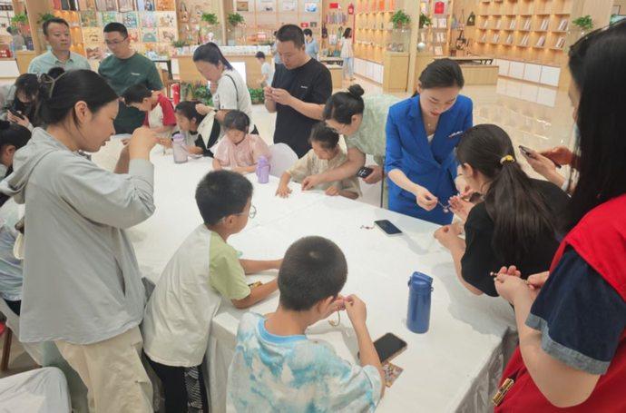 在博物院社教區(qū),家長與孩子們正圍坐在一起編織五彩繩,享受著溫馨的親子時光。孩子們指尖翻飛,不一會,便將一縷縷承載祝福的彩繩編織成鏈、綁在腕間。一位鄭州本地的家長表示:“現(xiàn)在不僅能在博物館里看到珍貴的文物,還能夠體驗傳統(tǒng)節(jié)日的民俗活動,這對孩子而言是一個非常豐富并且有意義的假期。”