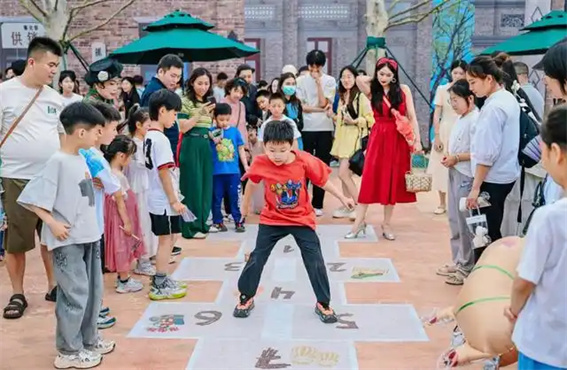 課外體驗(yàn)丟沙包、滾鐵環(huán)、跳皮筋潑水激戰(zhàn)、放肆蹦迪、手工DIY......端午假期,建業(yè)電影小鎮(zhèn)化身童趣王國(guó),"回到小時(shí)候"主題狂歡席卷全園,親子游客占比達(dá)60%。