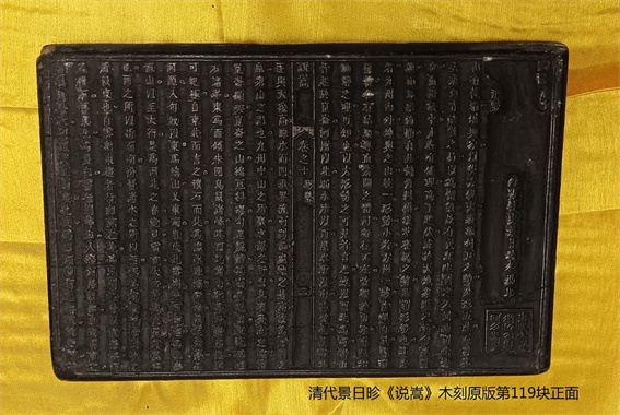 《清康熙年間嵩山“岳生堂”木刻書版》中最主要的有三部,《說嵩》被稱為嵩山的“百科全書”,《嵩崖尊生》是一部重要的綜合性醫(yī)學論著,《崧臺書》則是清代康熙年間資政大夫、禮部右侍郎加尚書銜景日昣從政活動的敘述與從政經驗的總結。此批木刻書版制作精良,現(xiàn)仍保存較好,是研究古代雕版技藝的重要實物檔案資料。