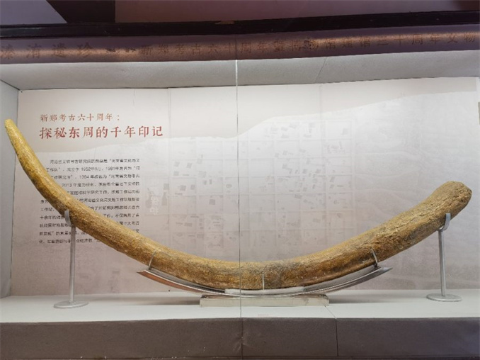 “這是納瑪象象牙,距今50萬(wàn)年,全長(zhǎng)3.55米,是目前省內(nèi)最長(zhǎng)的納瑪象象牙……”6月11日,新鄭市博物館內(nèi),原博物館館長(zhǎng)杜平安向記者介紹著“新鄭考古六十周年暨博物館建館三十周年文物展”珍貴展品之一。