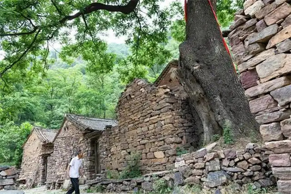 這棵千年古槐下,還保留一排老石頭房。