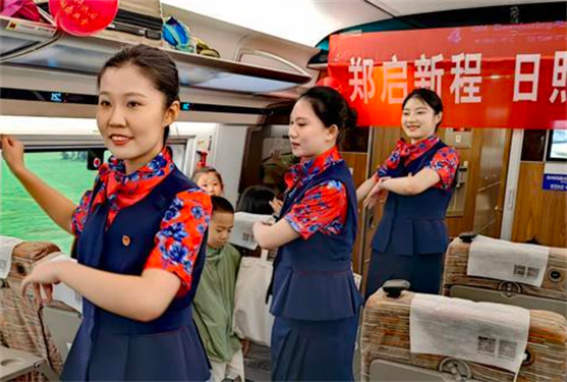 7月1月8時(shí)19分,全國鐵路將實(shí)行新的列車運(yùn)行圖,鄭州客運(yùn)段高鐵四隊(duì)擔(dān)當(dāng)?shù)腃R400BF-S復(fù)興號智能動(dòng)車組G3304次列車首發(fā)新線路新車次,從鄭州東站啟程開往日照正式開通運(yùn)營。