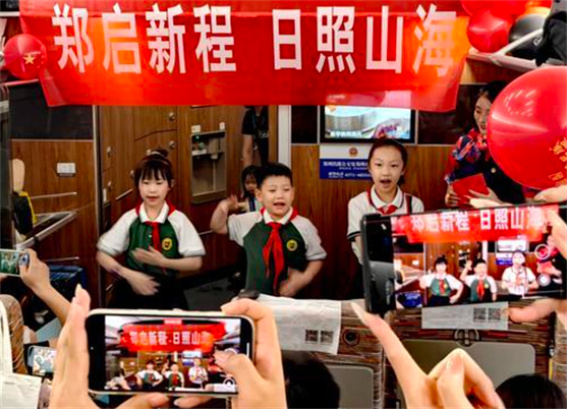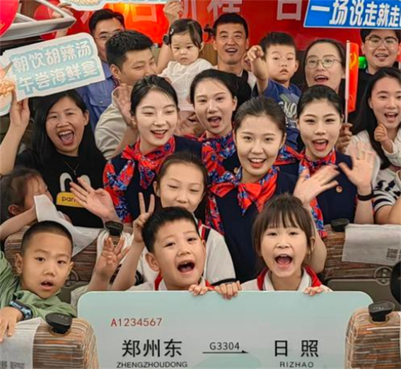 “孩子放假了,我一家三口第一次坐上高鐵去日照旅游,中午不耽誤吃海鮮,下午去沙灘看大海,真正感受到中國高鐵的方便快捷,這趟旅游車的開行為河南、山東兩省經(jīng)濟(jì)社會(huì)發(fā)展帶來更多機(jī)遇。”旅客李雅潔說。