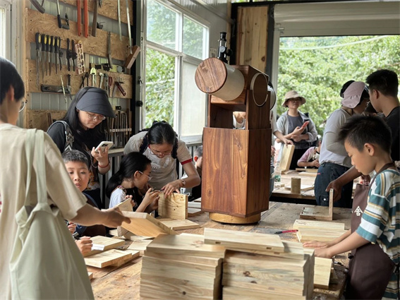 一山木舍非遺工坊主要提供原木家具制作、非遺大漆產(chǎn)品制作、親子木作體驗(yàn)和木工培訓(xùn),制作方式為傳統(tǒng)榫卯結(jié)構(gòu),并結(jié)合現(xiàn)代審美進(jìn)行工藝創(chuàng)新。