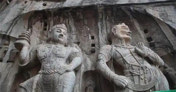 △ 龍門石窟奉先寺雕刻精美的天王與力士像。