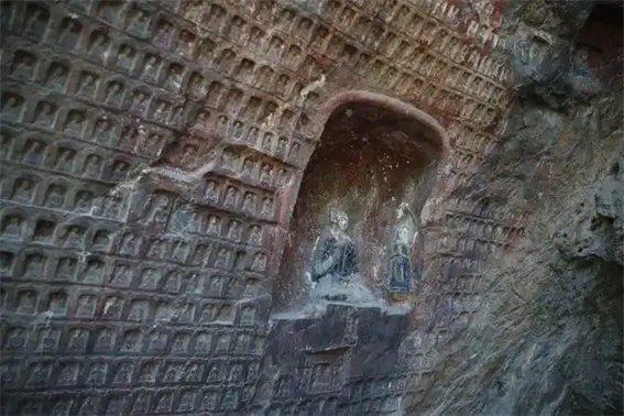 伊川呂寨石窟,開鑿時(shí)間早于龍門盧舍那大佛200余年,主窟內(nèi)釋迦牟尼結(jié)印端坐,文殊普賢侍立兩側(cè),衣褶如流水拂過北魏的風(fēng)霜?上в捎跉v史原因佛首盡失,唯存30余尊小像靜訴滄桑。