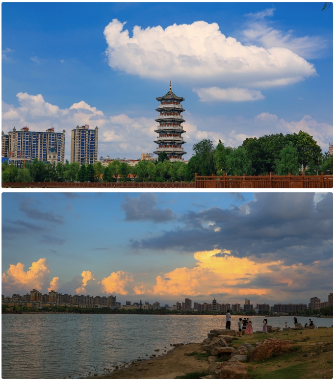 盛夏七月,雨后的柘城縣容湖國(guó)家濕地公園,像是被上天打翻了調(diào)色盤,夕陽(yáng)為這片濕地暈染出獨(dú)一份的詩(shī)意。
