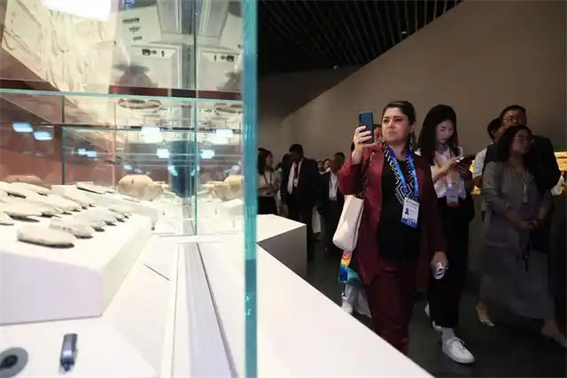 與會的嘉賓還參觀了新開放的大河村遺址博物館。(圖片由上海合作組織媒體智庫峰會提供)