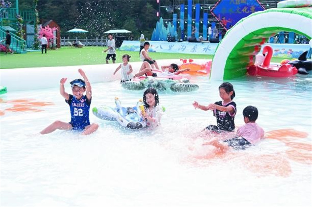 淺灘童趣:清澈見底的淺水區(qū),是孩子們的嬉水樂園,水槍大戰(zhàn)、摸魚撈蝦,盡享無憂童真。
